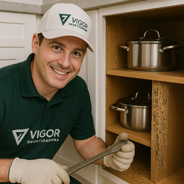 Elimine cupins de madeira e solo antes que causem danos invisíveis e prejuízos graves. Nossa equipe realiza tratamento profissional com produtos autorizados e técnicas eficazes, atendendo casas, prédios e comércios em toda São Paulo.